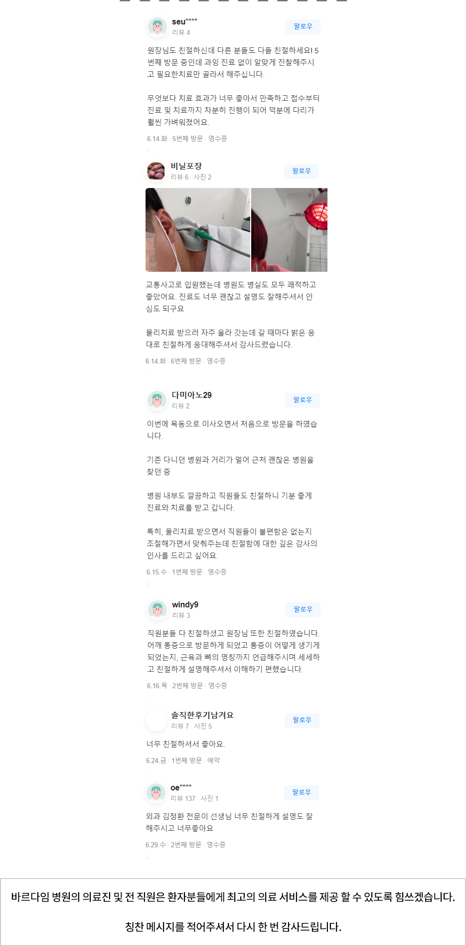 여러분의 소중한 의견을 반영하고 개선하여 함께 동행할 수 있는 바르다임병원을 만들어가겠습니다.