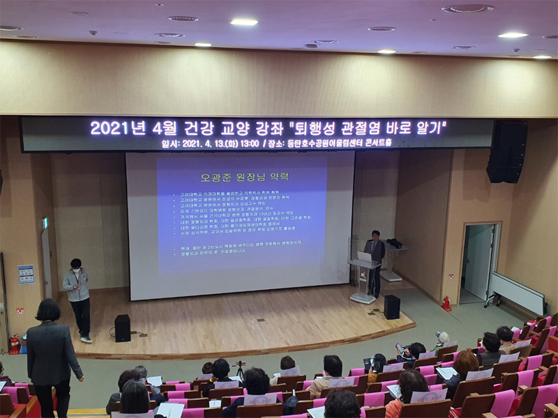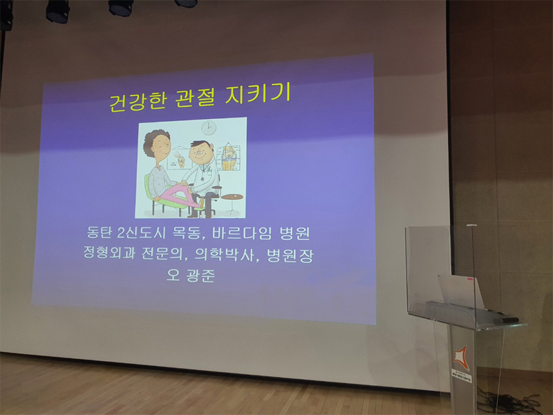 오광준 병원장님이 건강 교양 강좌 "퇴행성 관절염 바로알기" 강연을 진행하였습니다.