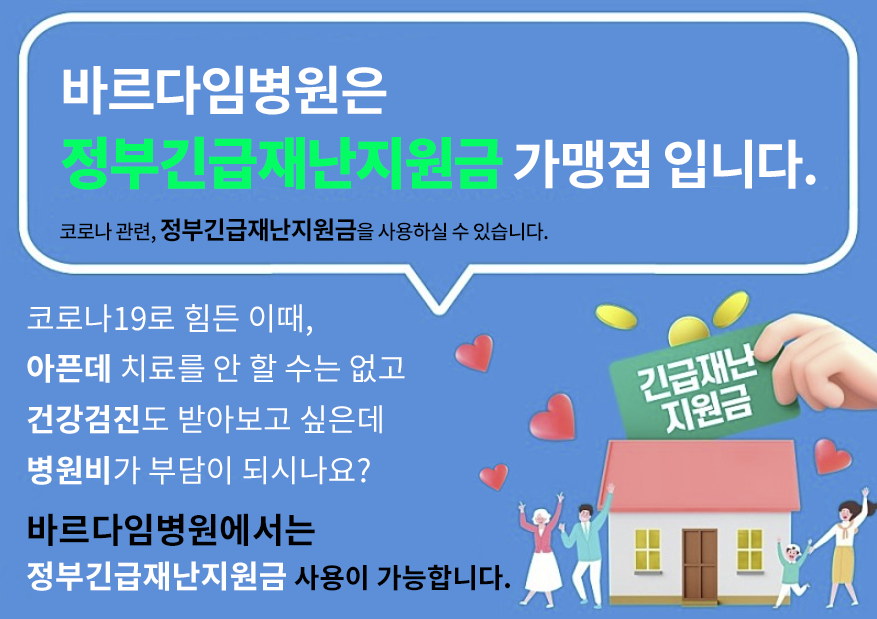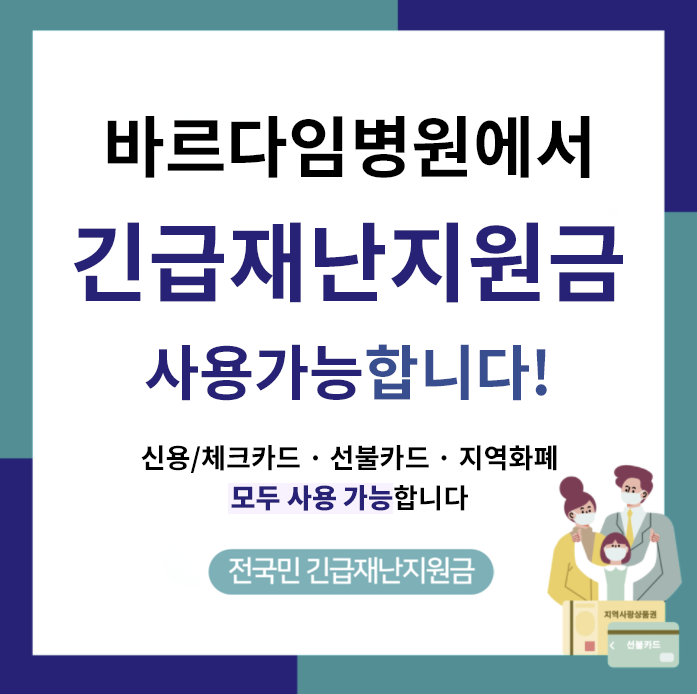 바르다임병원에서는 정부긴급재난지원금 사용이 가능합니다.