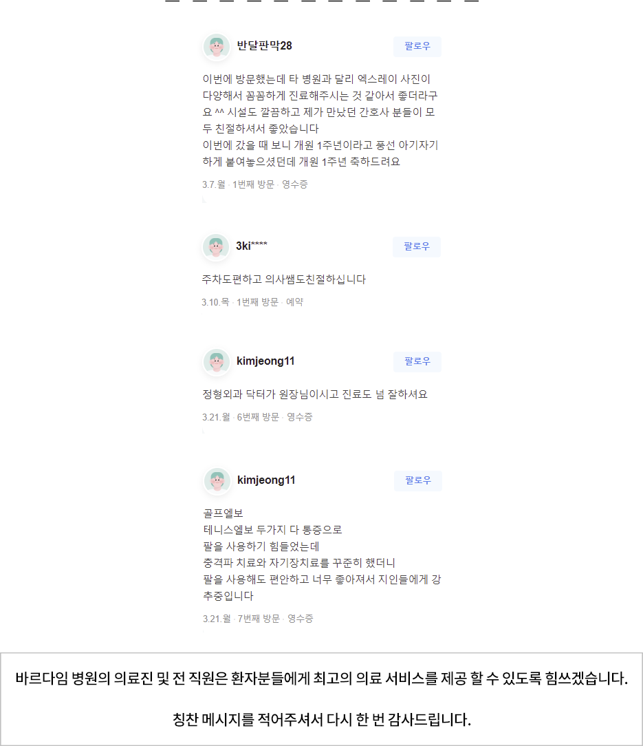 여러분의 소중한 의견을 반영하고 개선하여 함께 동행할 수 있는 바르다임병원을 만들어가겠습니다.