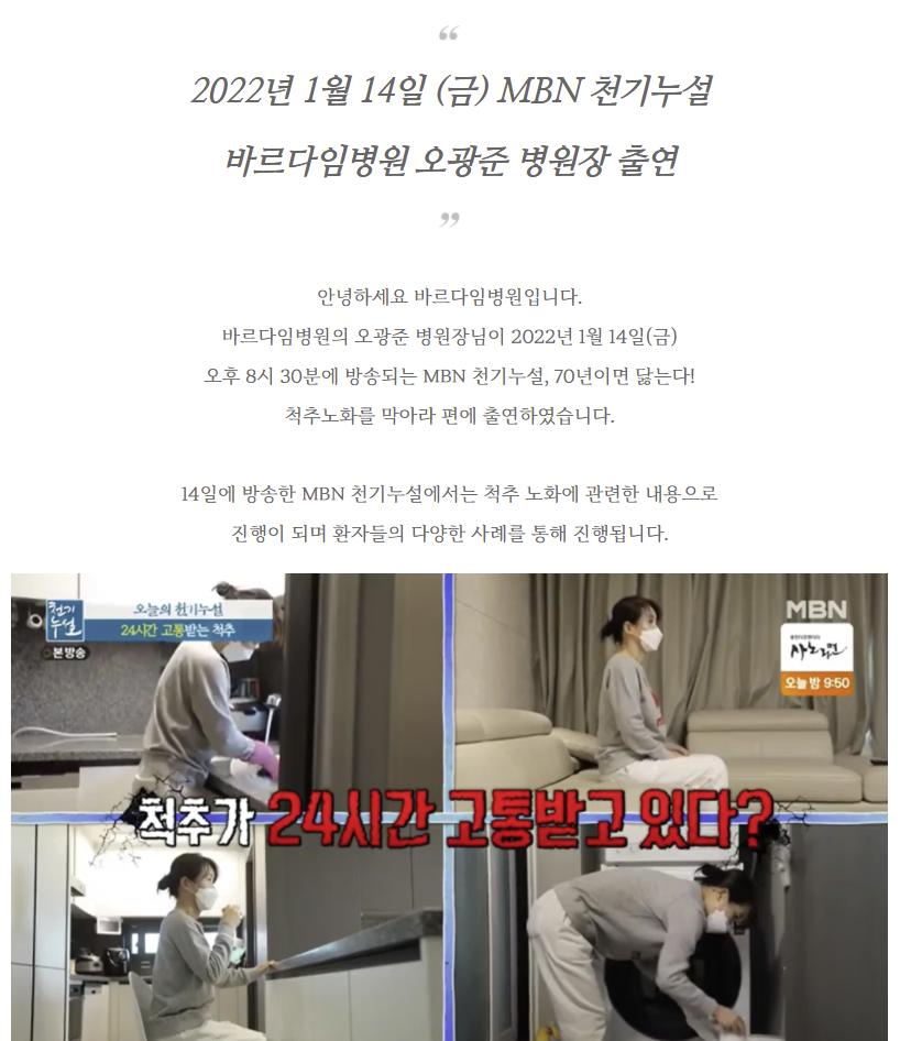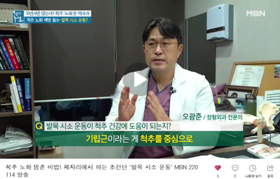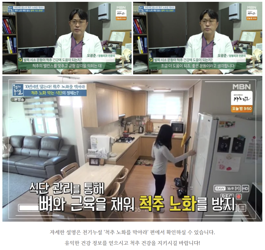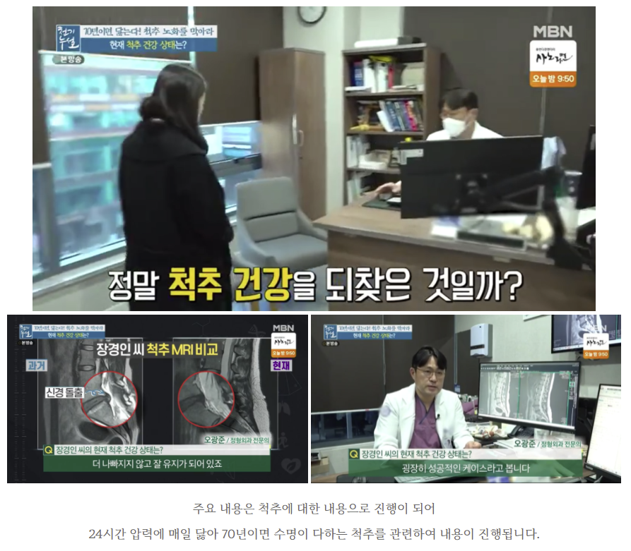 MBN 천기누설 501회, 척추 노화를 막아라 편 '오광준 병원장 출연'