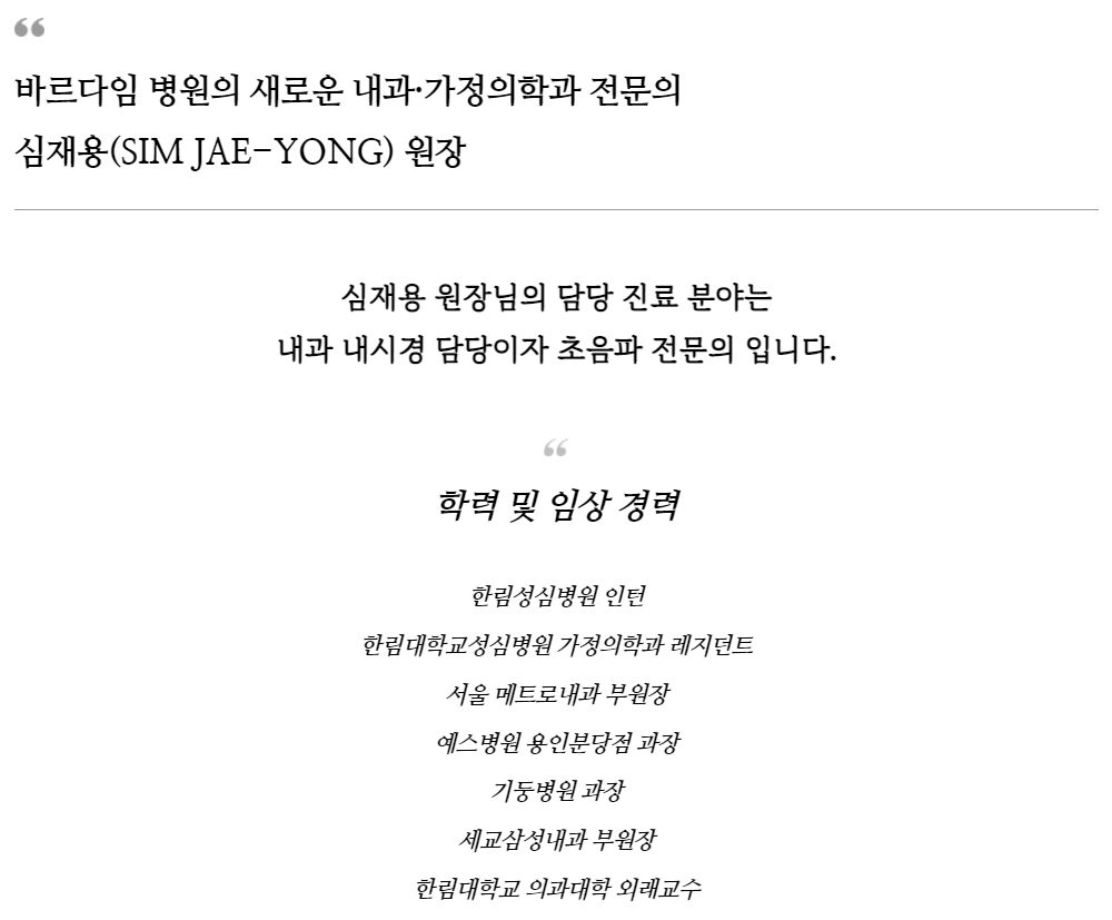 신규 내과 의료진, 심재용 원장 진료 개시