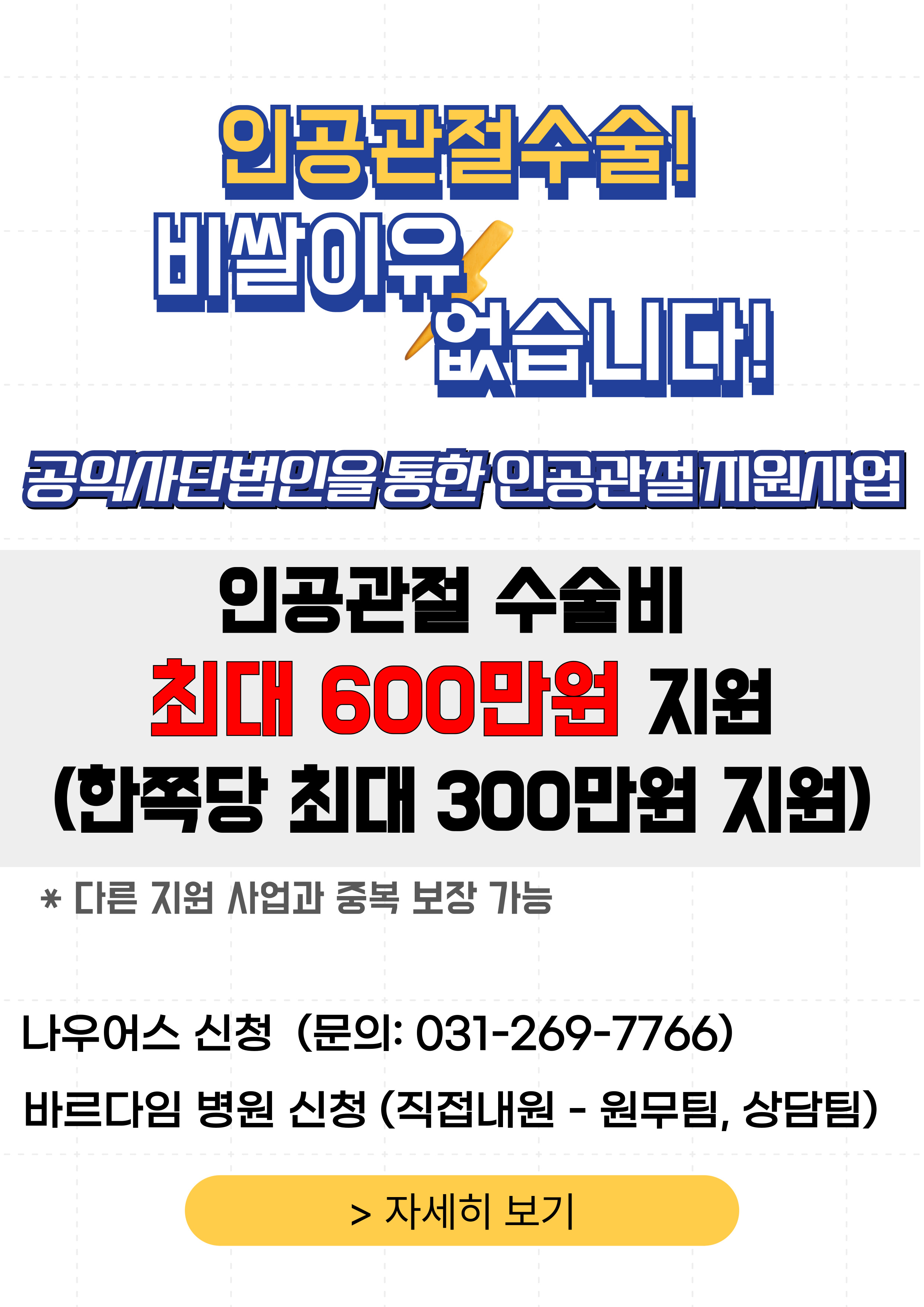바르_다임 X 나우어스 공익사단법인을 통한 인공관절 지원사업지원대상 : 만 60세 이상 지원혜택 : 지원금 최대..