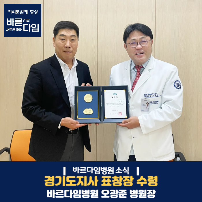 안녕하세요.치료에서 일상까지 ALL바르게바르다임병원입니다.저희 병원에 좋은일이 있어이렇게 공유하게 되었습니다~!저희 오광준 병원장님께서경기도지사 표창을을 받게 되었습니다!..