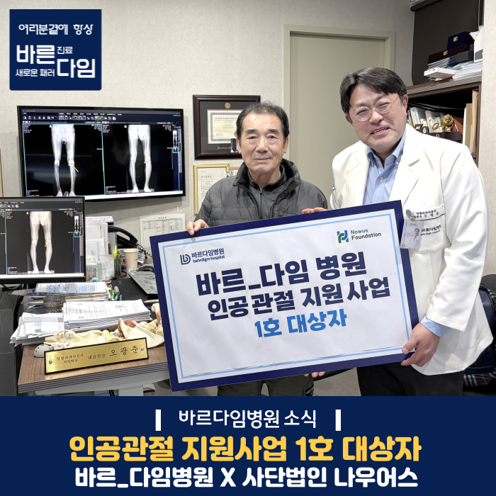 인공관절 수술!비쌀 이유 없습니다. 바르_다임 병원은 공익재단을 통해 지역 내 노년층을 (만60세 이상)대상으로 인공관절 수술비를 ..