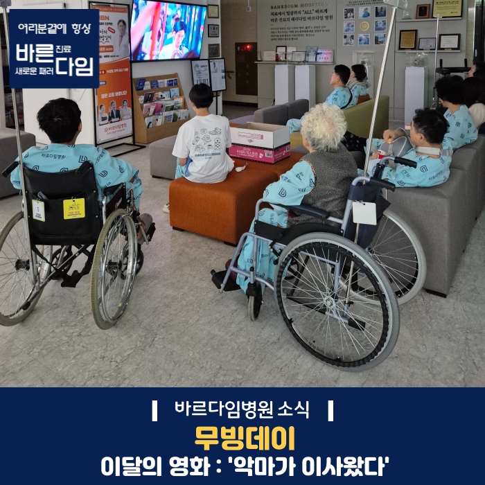 안녕하세요.치료에서 일상까지 ALL바르게바르다임병원입니다.이번 12월에도 병원에 머무르고계신 환자분들을 위해이달의 영화상영을 진행했습니다.이번 영화는<악마가 이..