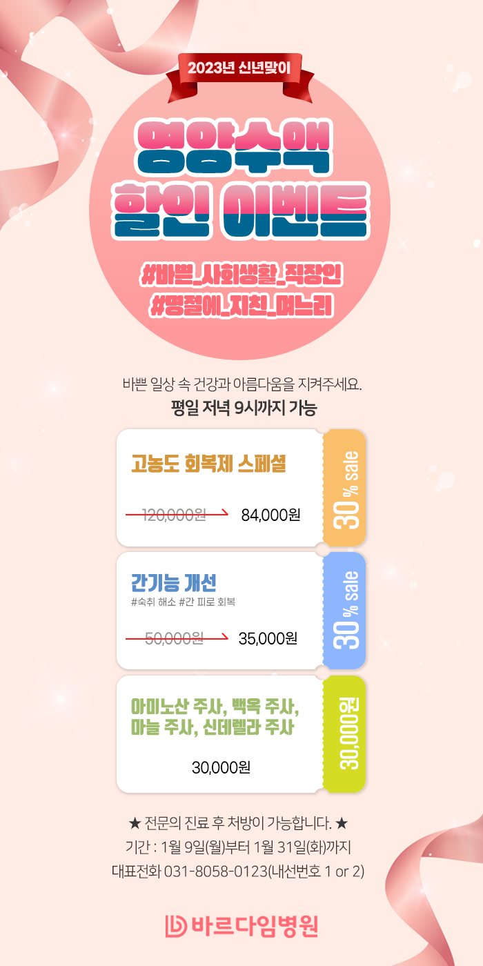 [이벤트] 겨울철 보약! 맞춤영양수액으로 떨어진 면역력 높이고 피로 회복하세요.