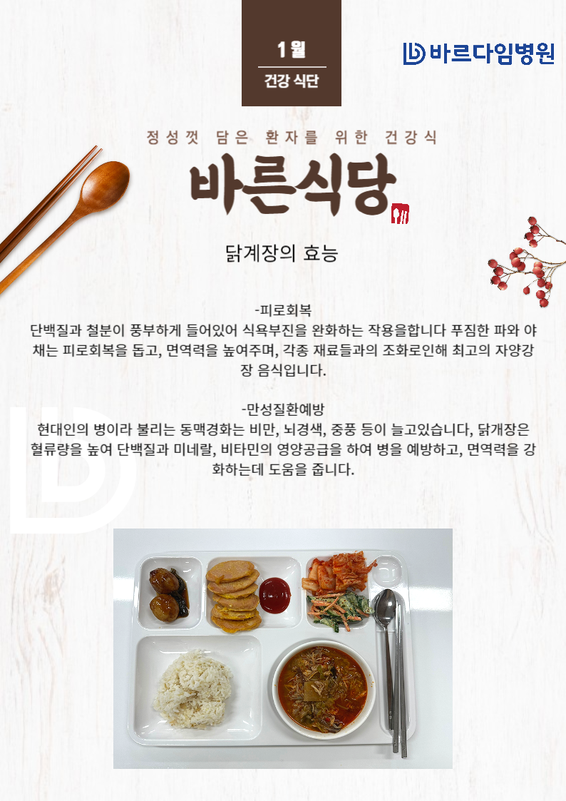 바르다임병원의 1월 셋째주 입원 식단을 소개합니다.
