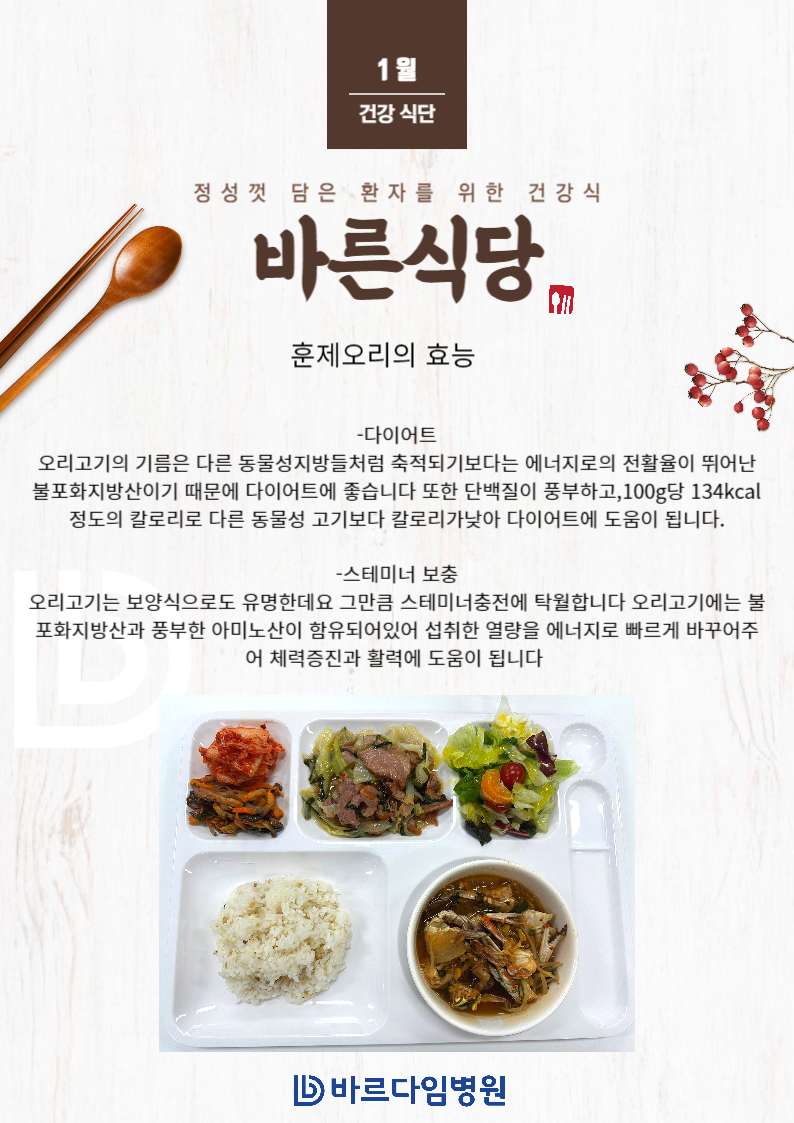 바르다임병원의 1월 셋째주 입원 식단을 소개합니다.