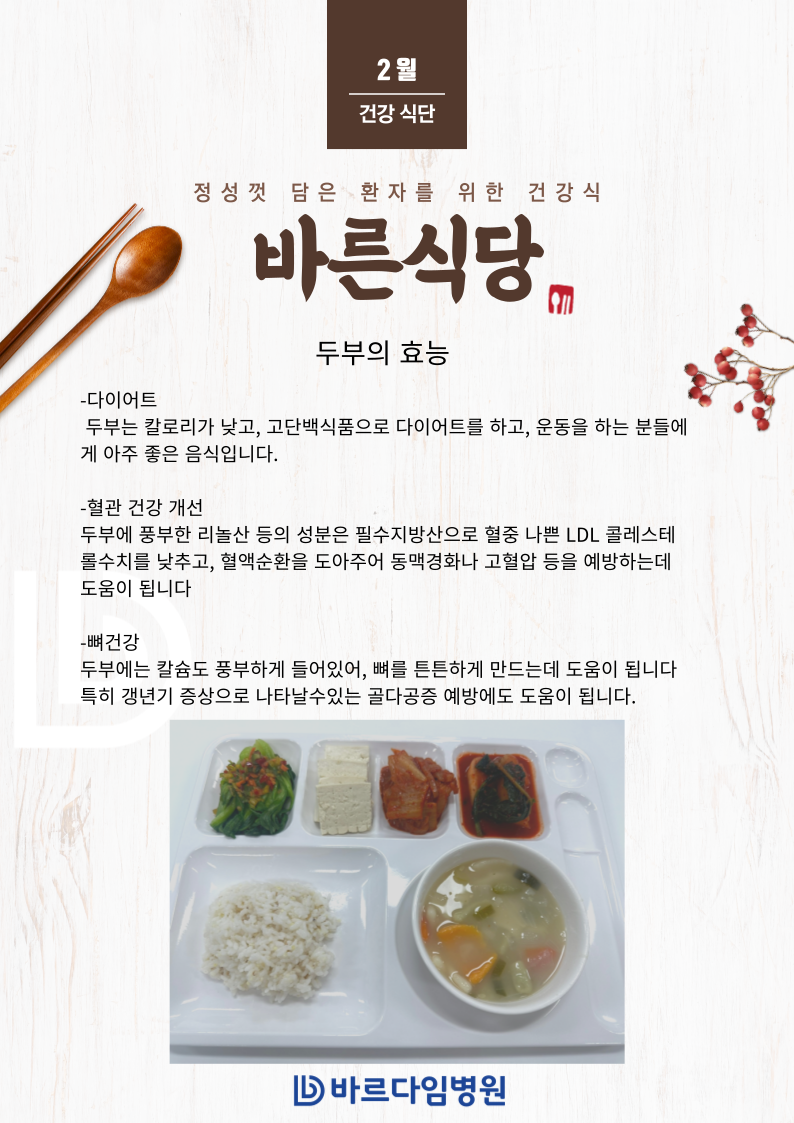 바르다임병원의 2월 둘 째주 입원 식단을 소개합니다.