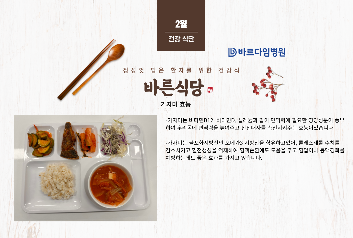 바르다임병원의 2월 다섯 째주 입원 식단을 소개합니다.