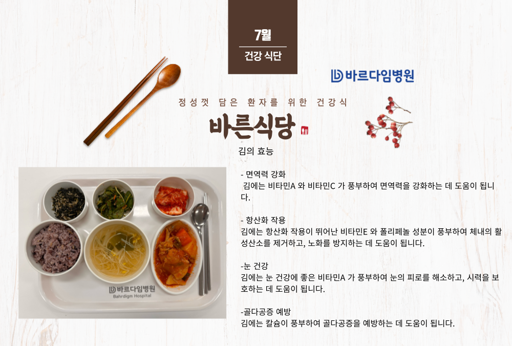 2024년 7월 첫 째주 입원 식단을 소개합니다.