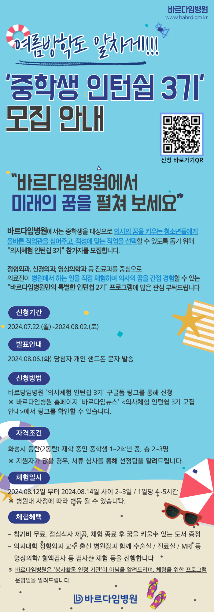 [바르다임병원] 의사체험 '중학생 인턴쉽 3기' 모집안내