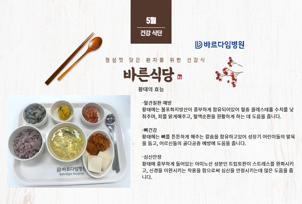 2025년 5월 둘 째주 입원 식단을 소개합니다.