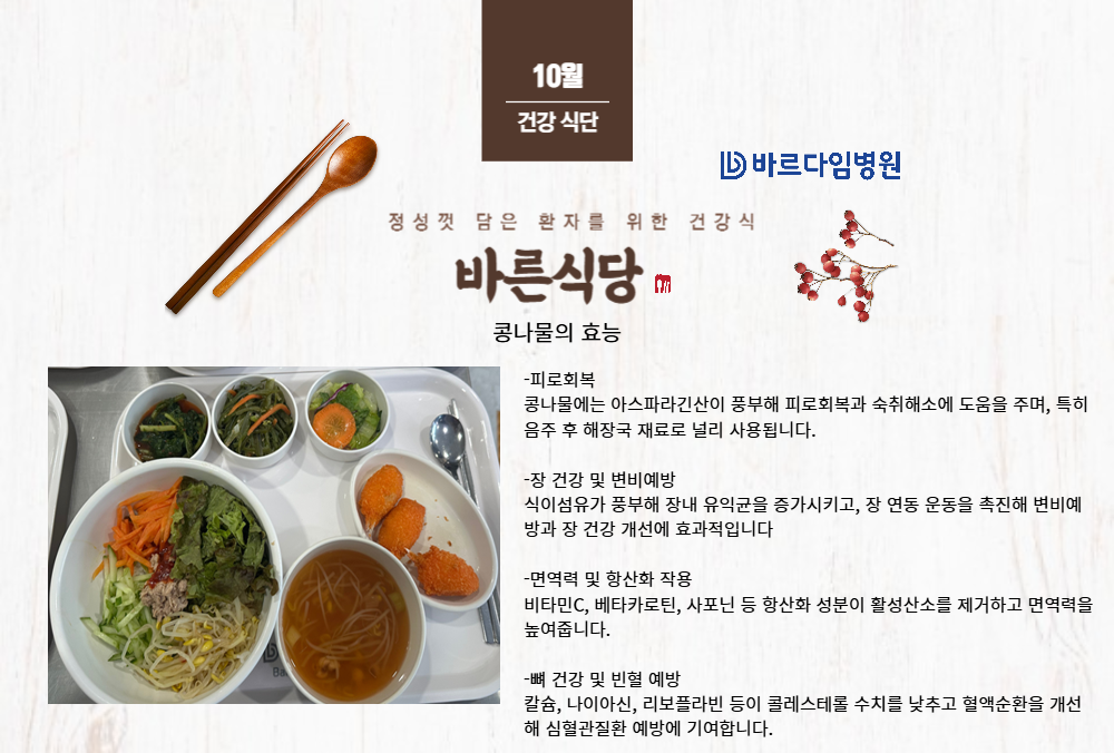 2025년 10월 둘 째주 입원 식단을 소개합니다.