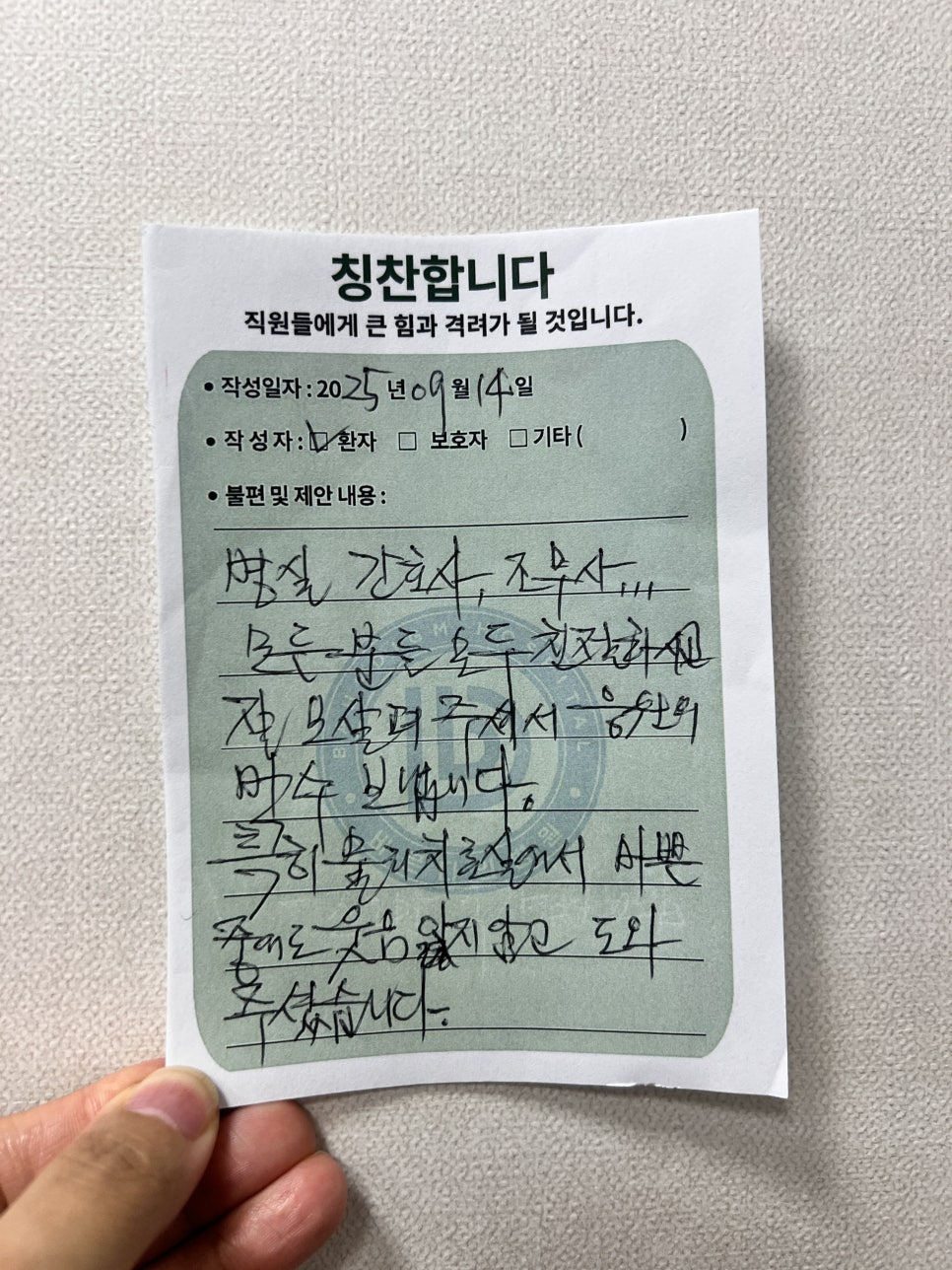 바르다임병원 2025년 10월 이달의 칭찬카드