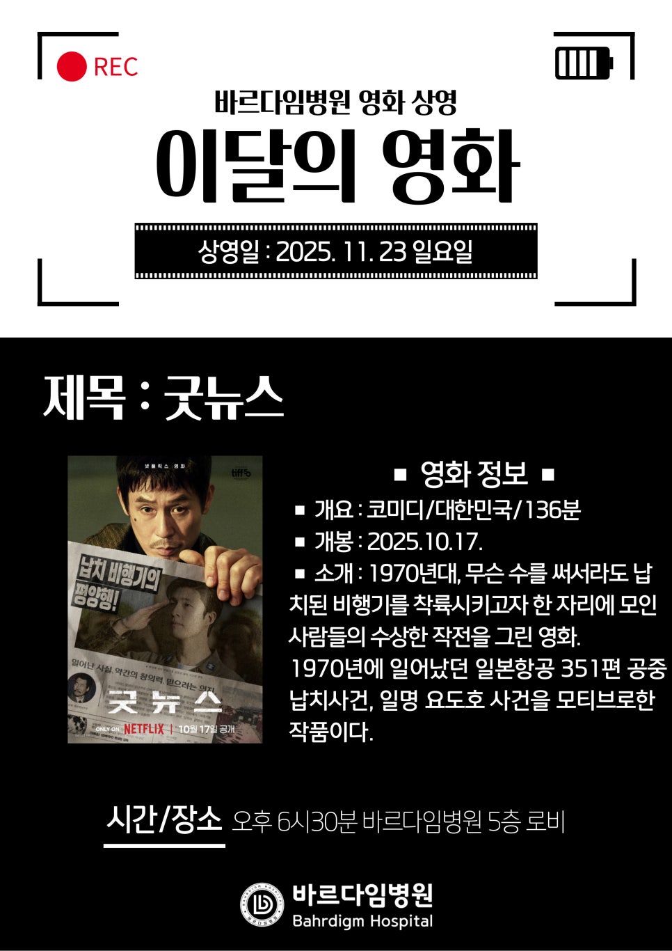 #바르다임병원 #이달의영화 #병동환자이벤트