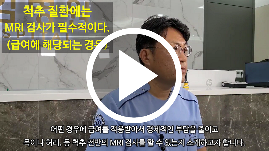 그렇기에 척추 질환에 있어서 급여에 해당 되는 경우엔 MRI 검사는 필수적이라고 볼 수 있겠습니다.